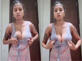 Desi babe flaunts her big boobs and curvy ass in solo video