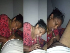 A mature aunt from India gives a first-person blowjob in a video