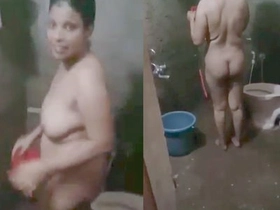 Village bhabi takes a bath in a rustic setting