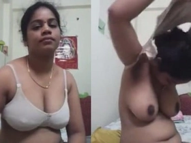 Indian wife shows her breasts in front of the camera