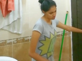 Indian wife flaunts her large breasts and intimate area in the bathroom