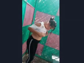 Hot video of woman stripping in the bathroom
