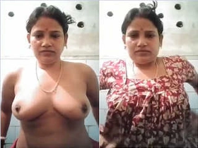 Hot Bengali girl flaunts her large, round breasts in selfie video