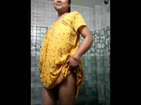 Indian wife in the nude in the bathroom