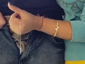 Indian bhabhi gives a handjob and gets a cumshot on her breasts