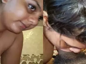 Cute desi girl gives her boyfriend a blowjob in the bathroom