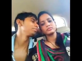 Shy Indian girlfriend kisses her partner in the car