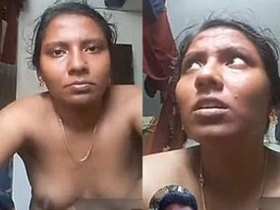 Tamil wife with large breasts teases herself with her fingers