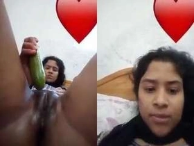 Indian amateur Boudi masturbates with cucumber in part one