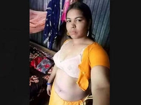 Aunty in saree flaunts her belly button in homely setting