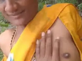 Aunty Desi's big tits in the country