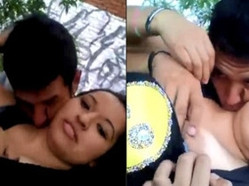 Girlfriend's big tits squeezed tightly by her lover