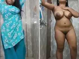 Nude Desi girl strips in the bathroom and shows her boobs