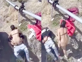 Daring couple engages in public sex in a risky location