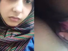 A young and cute hijabi girl from India shows off her pretty pussy