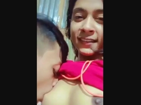 Teen cam girl's boyfriend sucks her breasts in a sensual encounter