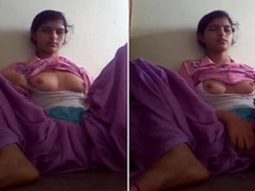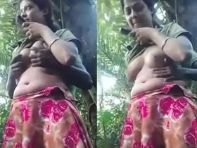 Desi teen opens her dress to show her body in a village setting