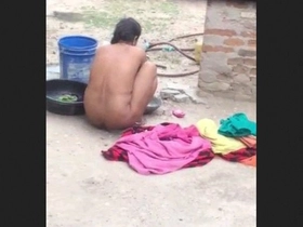 Desi aunty takes a bath outdoors and gets caught by a voyeur