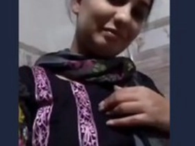 Beautiful girl flaunts her large breasts in village video